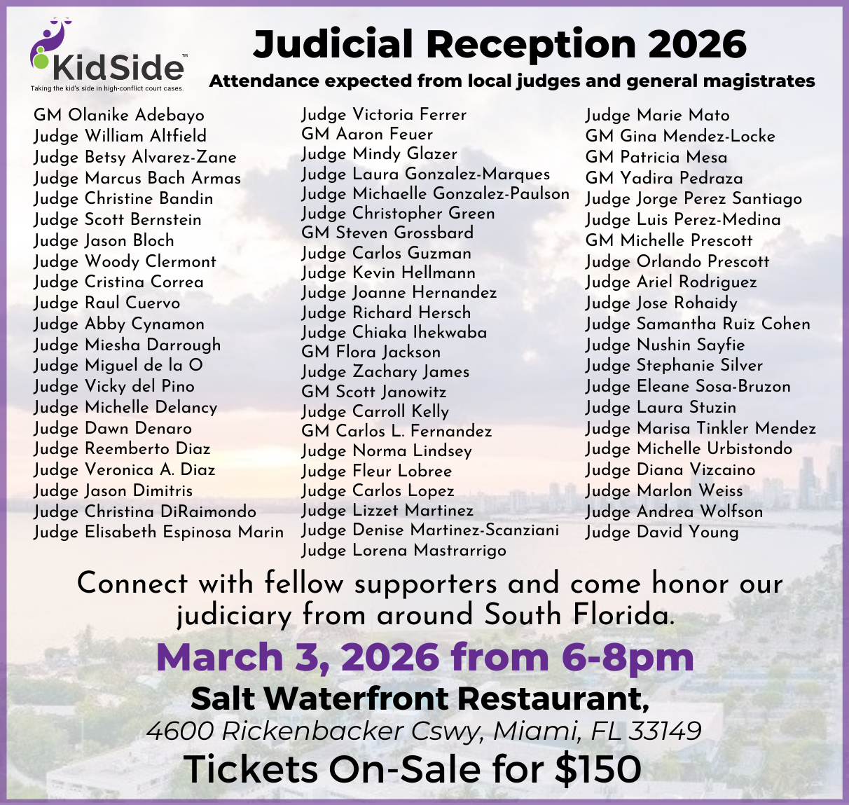Through our partnership with Miami-Dade Family Court Services, KidSide funds essential court-ordered services for both parents and children involved in high-conflict family cases. We don’t fund individuals or provide care directly—instead, we cover the cost of services through pre-approved providers selected and coordinated by Family Court Services.
